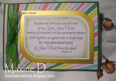 Some ribbon, a bow and some rhinestones finished the front panel of the card